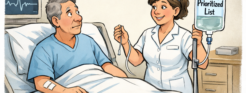 The foundation was the Prioritized List, which ranked covered medical services based on their cost effectiveness coupled with proven medical science efficacy. No longer could patients badger their doctor to prescribe some drug with hard to pronounce names being pushed by Big Pharma, using slick television ads showing folks spontaneously gathering at the town square in flowering skirts and tap shoes to dance and sing, celebrating life renewal since taking the latest $5,000 a month wonder drug, only with science having proven that a $10 generic medication would have been just as effective.