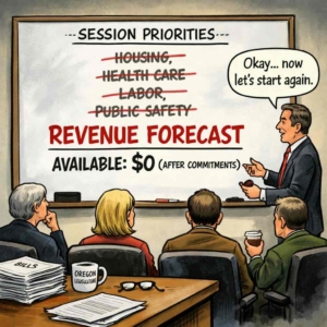 As scheduled, the state’s revenue forecast was presented — the document against which all budget recalibration this session will ultimately be measured. The forecast did not signal a fiscal collapse, but neither did it provide meaningful new breathing room. The numbers were flat enough to prevent panic and tight enough to force trade-offs.